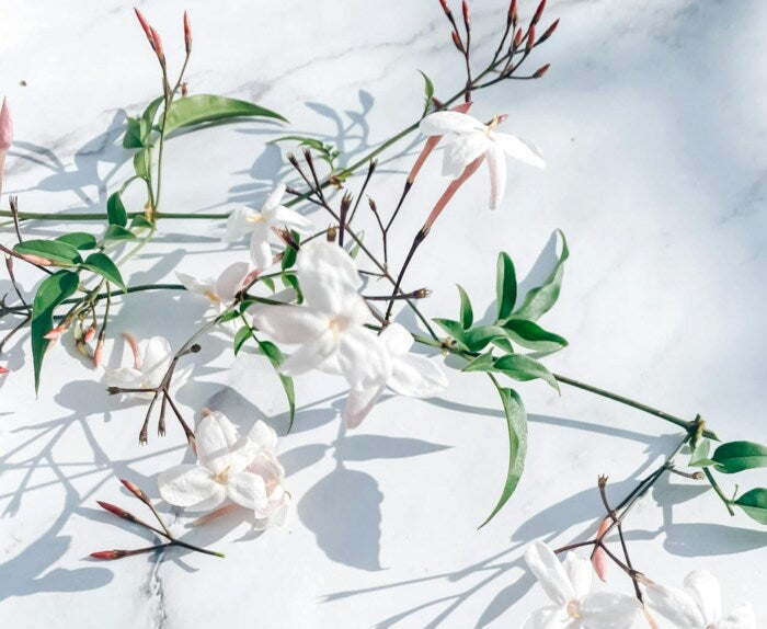 I fiori di gelsomino apportano numerosi benefici alla pelle. Hanno proprietà antinfiammatorie e antibatteriche che aiutano a ridurre rossori e acne. Ricchi di antiossidanti, migliorano l'elasticità e l'idratazione della cute, donandole un aspetto luminoso e uniforme. Leniscono e rivitalizzano, contribuendo a una pelle sana e radiosa.